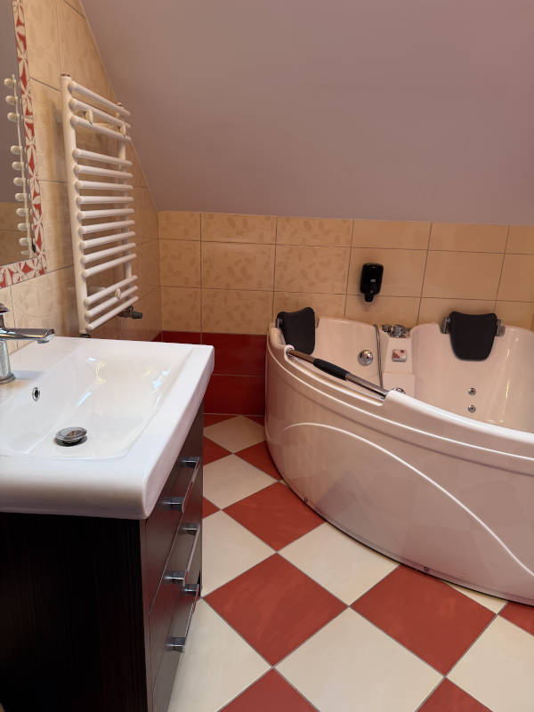 Apartamenty dwupokojowe w Dworku na Błotach to propozycja dla osób ceniących sobie większą przestrzeń, prywatność i odrobinę luksusu. Każdy z dwóch apartamentów składa się z komfortowej sypialni oraz eleganckiego salonu, tworzących idealne warunki do wypoczynku we dwoje. Stylowe wnętrza, harmonijne połączenie naturalnych barw oraz starannie dobranych dodatków wprowadzają atmosferę spokoju i relaksu. Do dyspozycji gości jest również nowoczesna, prywatna łazienka, wyposażona we wszystko, co niezbędne do pełnego komfortu. Apartamenty sprawdzą się doskonale zarówno podczas romantycznego wyjazdu, jak i dłuższego pobytu, oferując wyjątkową wygodę w sercu malowniczych Kaszub.